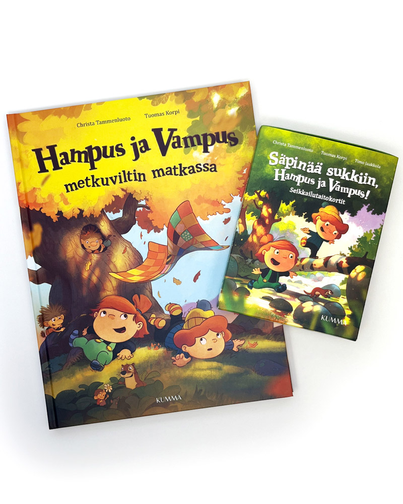 Seikkailutaitokortit Säpinää sukkiin, Hampus ja Vampus!, joiden avulla lapset pääsevät harjoittelemaan neljää keskeistä osa-aluetta: liikkumista, kaveri- ja tietoisuustaitoja sekä ongelmanratkaisua.